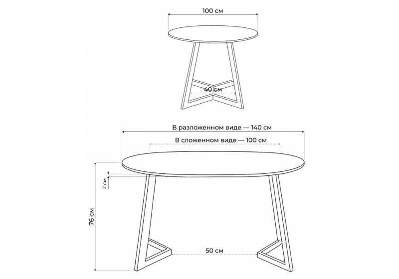 Длина стола в разложенном виде: 140 см.